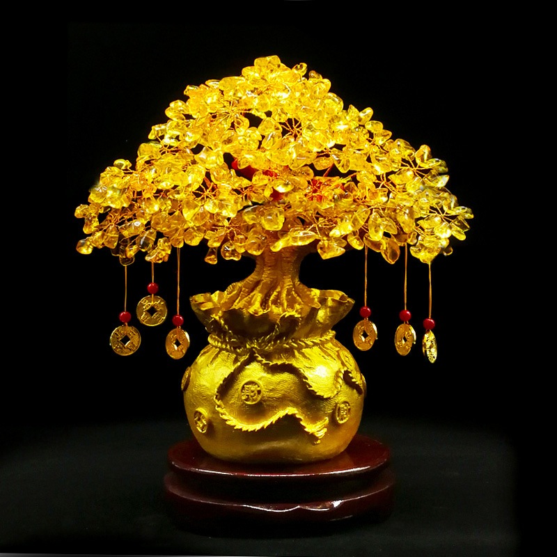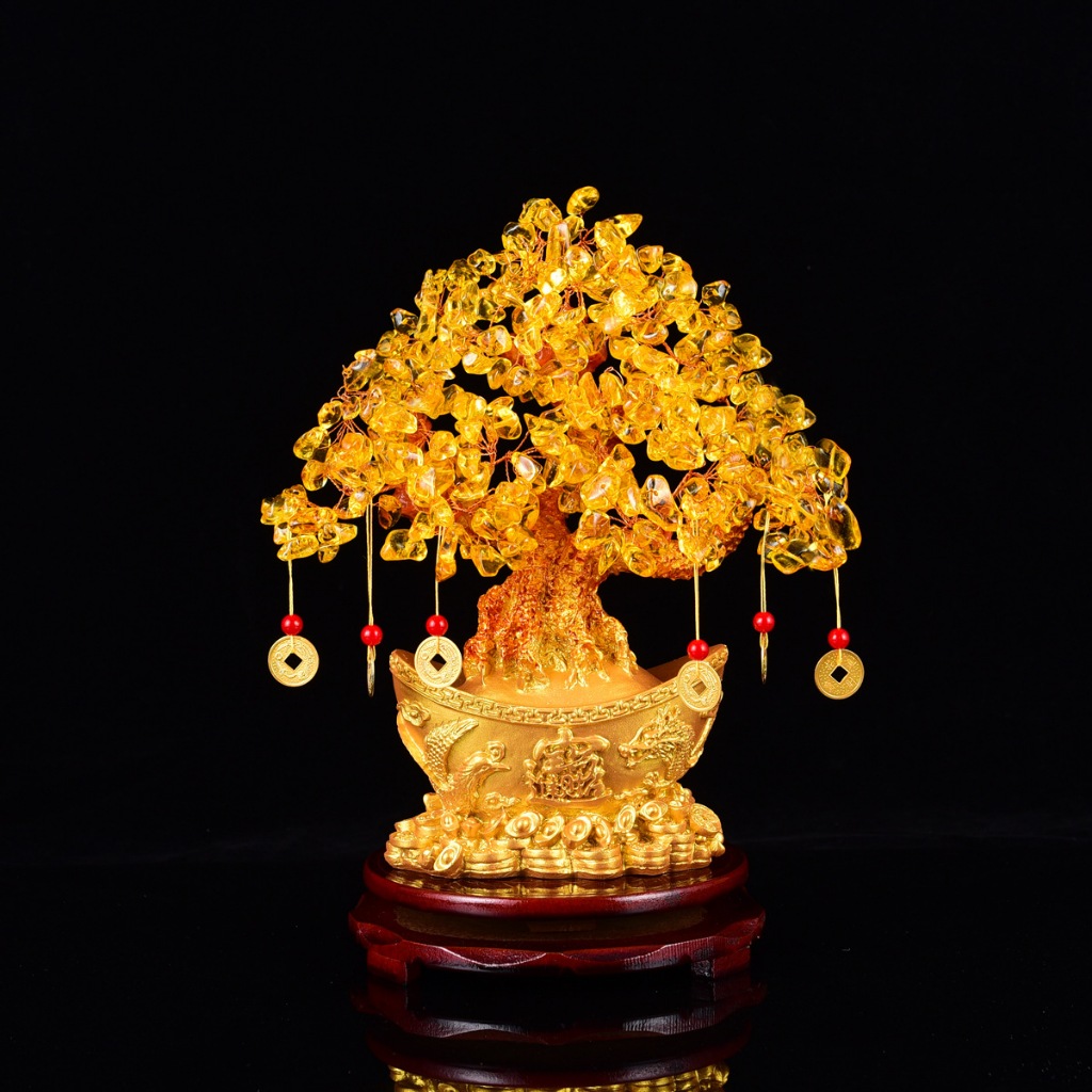 Pohon Keberuntungan Uang China Emas Ingot Kristal Keberuntungan Hiasan Pohon Dekorasi Rumah Kantor - LUCKY TREE