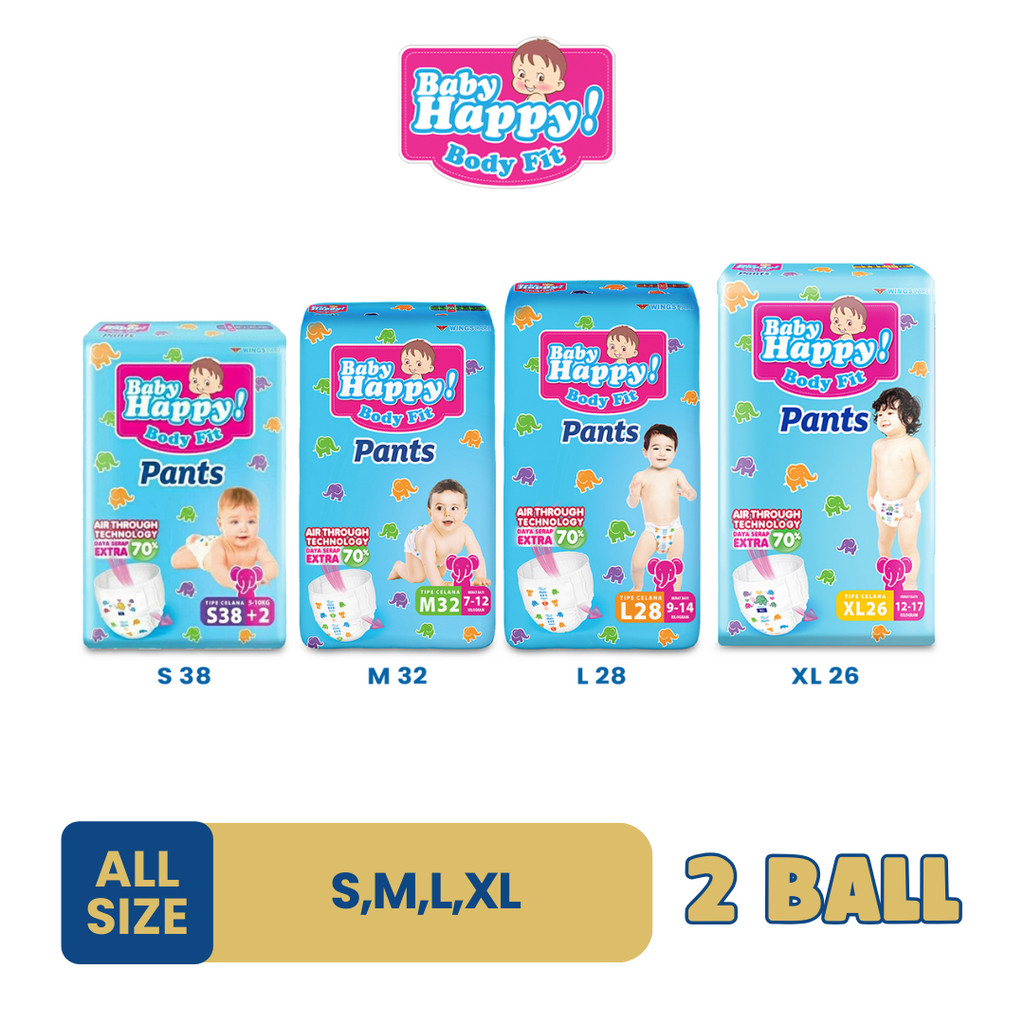 Baby Happy Popok Body Fit Pants 2 Ball Ukuran S40 - XL26 Pampers Bayi Celana