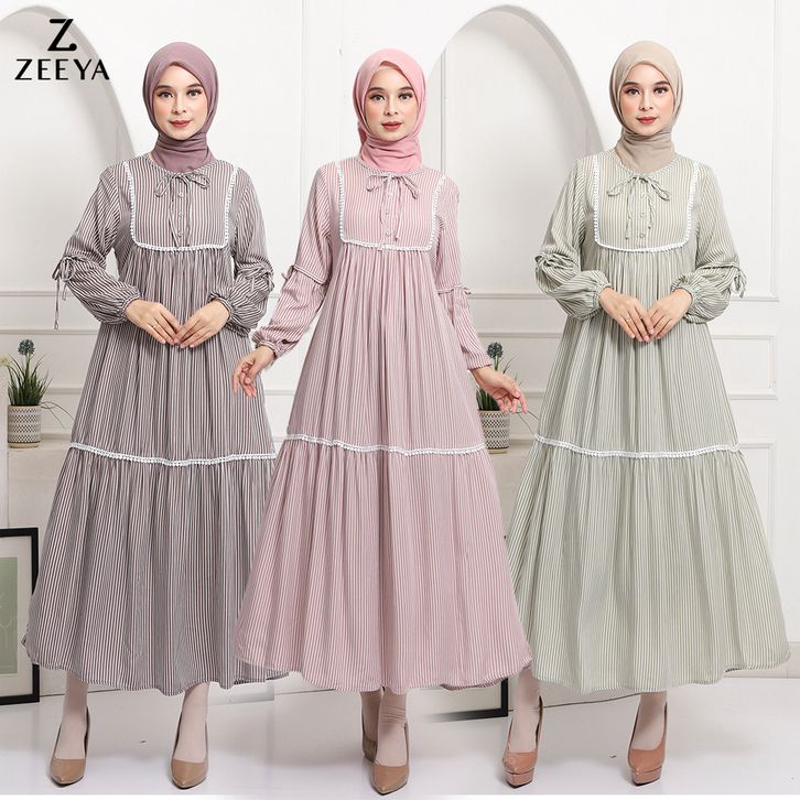 selina gamis midi dress syari wanita rayon viscose premium size m-xl - zeeya collection