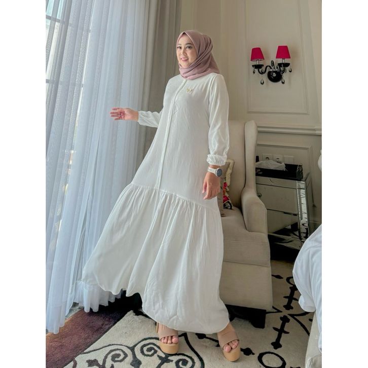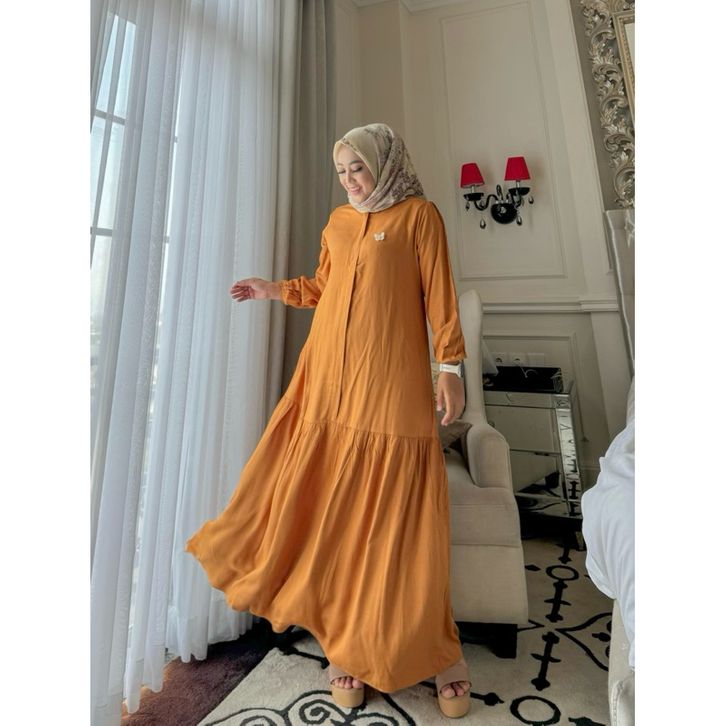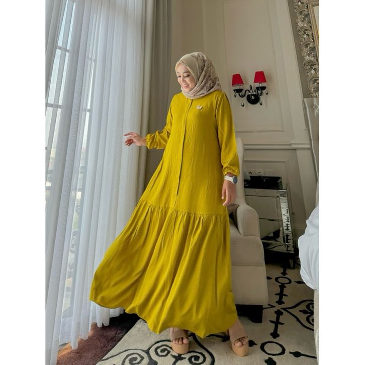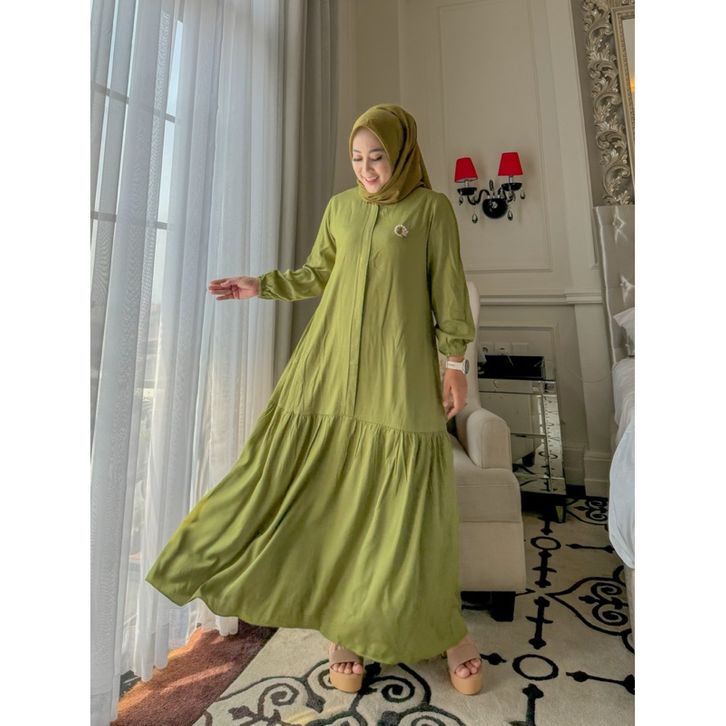 aurel dress jumbo rayon twill busui friendly gamis adem lembut nyaman dress kondangan