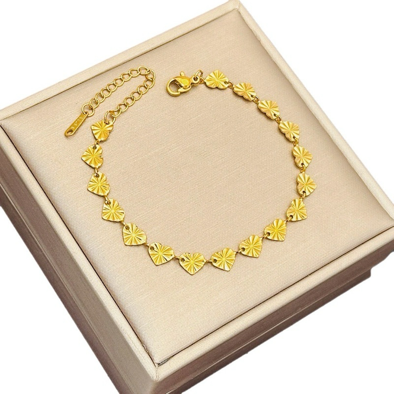 Gelang Wanita titanium trendy lapisan gold model Love melingkar cantik