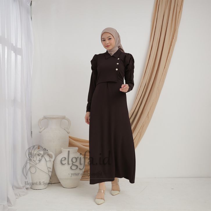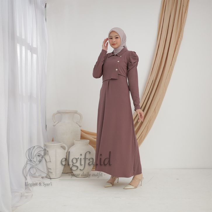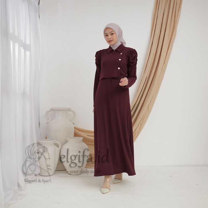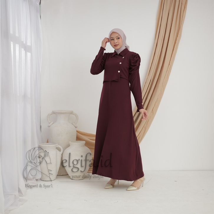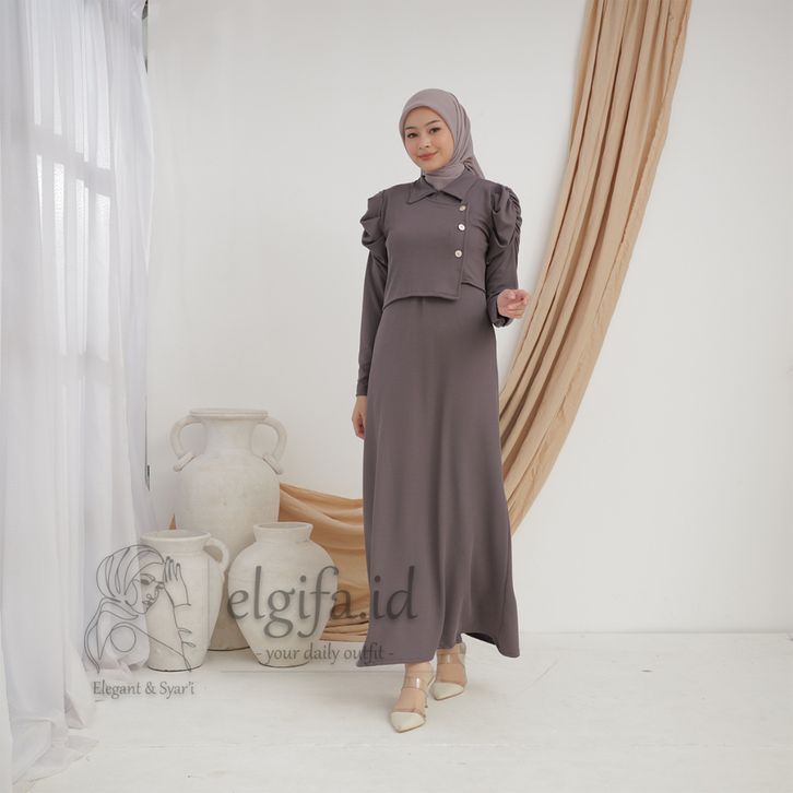 elgifa id - adreena maxi dress gamis wanita premium knit rompi muslim freebross