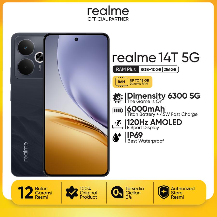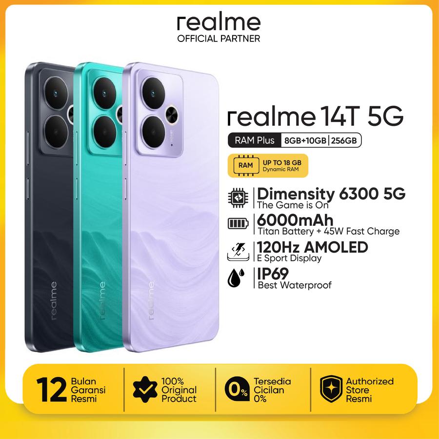 realme 14T 5G 8/256GB | 8/128GB NFC - Layar AMOLED 120Hz, GT Boost Sistem Performa Anti Delay - realme 14t