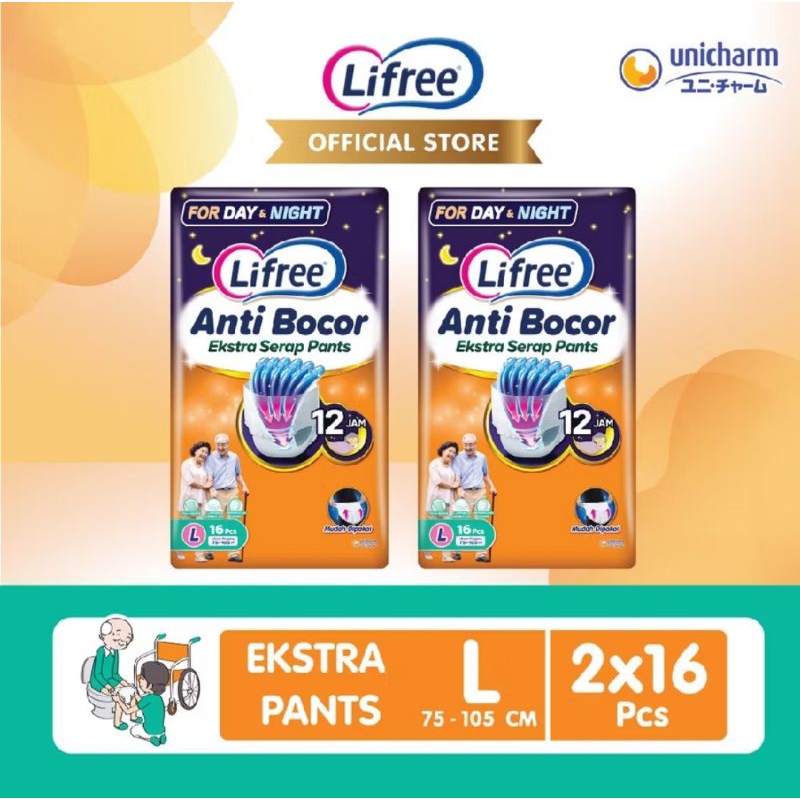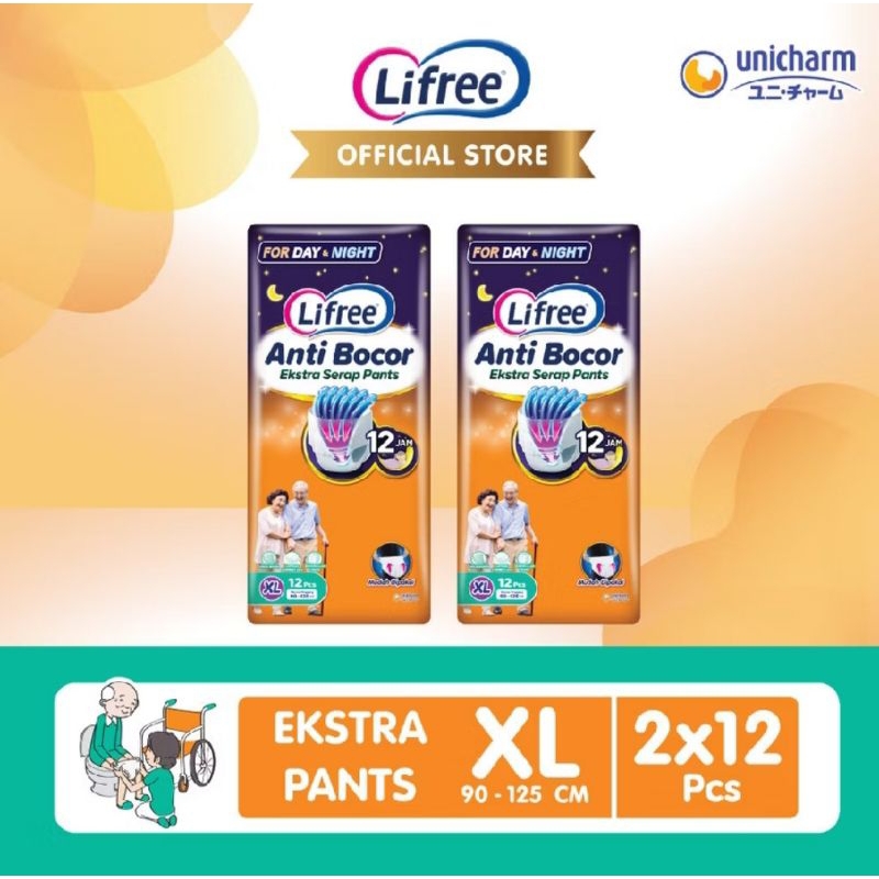 Popok Dewasa Celana Extra Serap M20x2, L16x2, XL12x2, XXL10x2 / Lifree Ekstra Serap / Lifree Popok Dewasa Ekstra Serap C