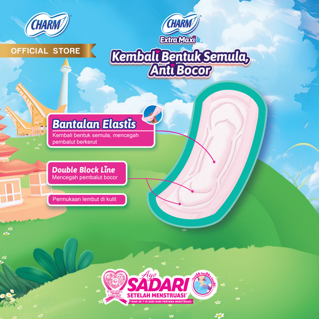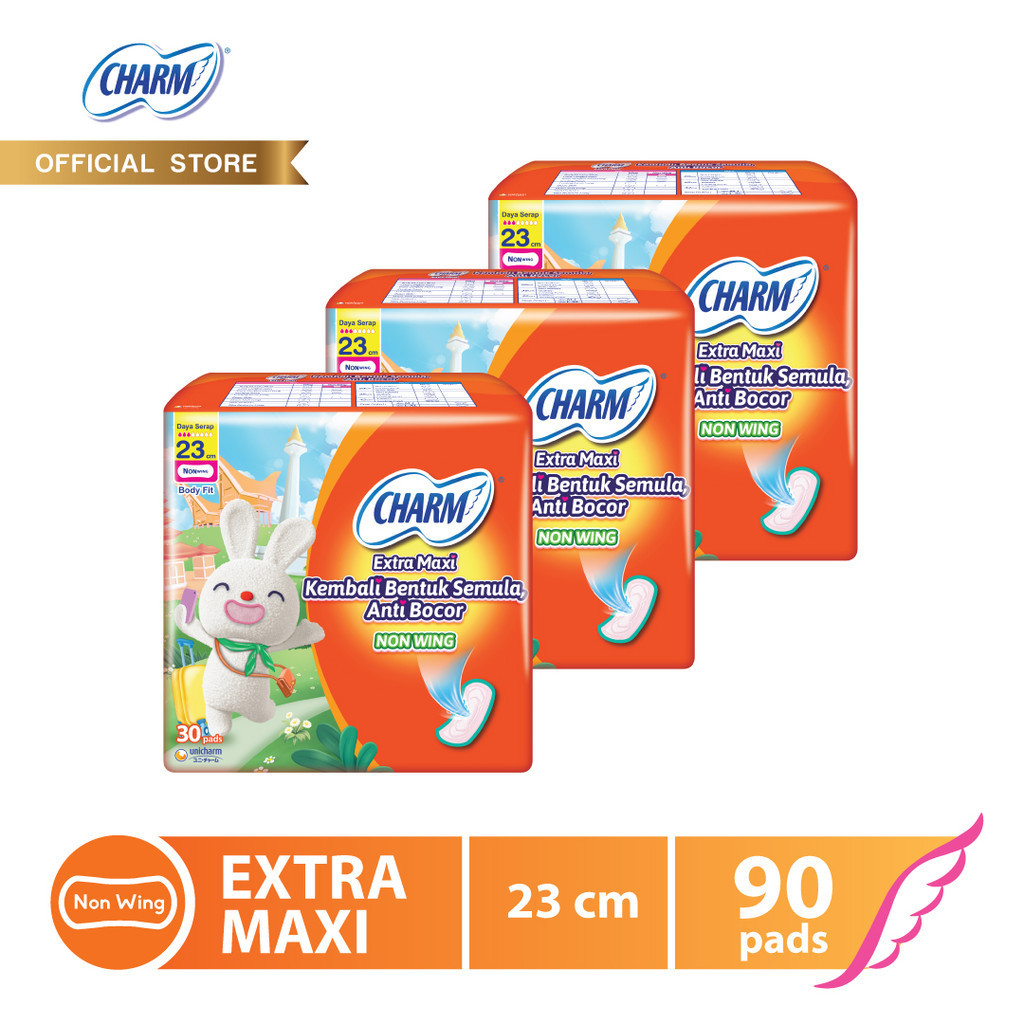 Charm Pembalut Body Fit Extra Maxi 23cm Non Wing 30 pads - 3 Packs