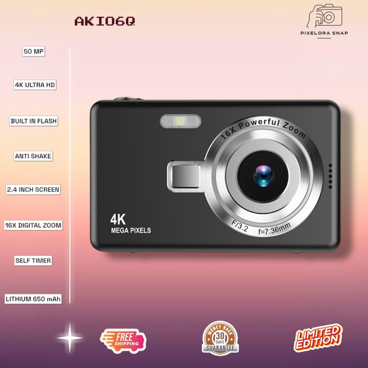 Kamera Pocket PIXELORA SNAP AKIO6Q 4K Digital Camera Original 50MP Anti Shake 16X Digital Zoom Built in Flash