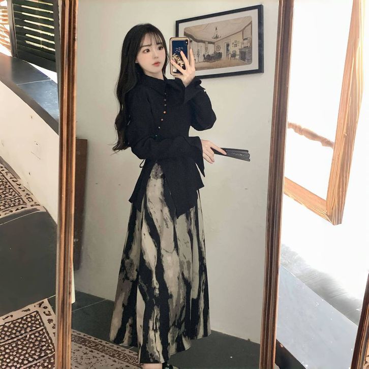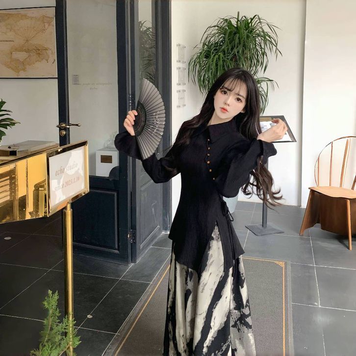 GROSIR Atasan Lengan Panjang Celah Kerah Gaya Cetak Tinta Setelan Fashion Baru Musim Semi 2024 Wanita M647 asocmn