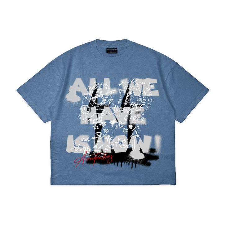AccentAmbios Kaos Boxy Oversized All We Have is Now Steel Blue Pria dan Wanita - Cotton Combed 20s
