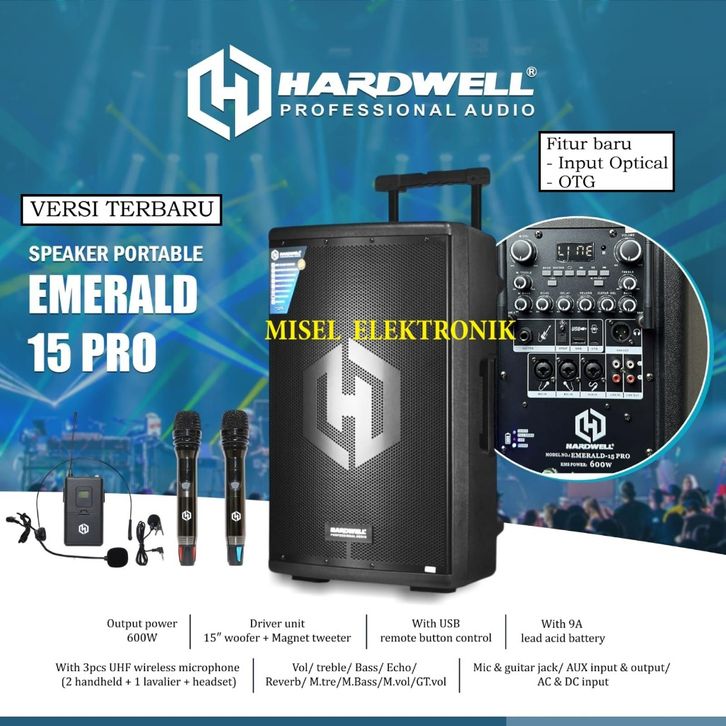 Hardwell Speaker Portable Emerald 15 Pro RMS 600 Watt Bluetooth OTG Optical