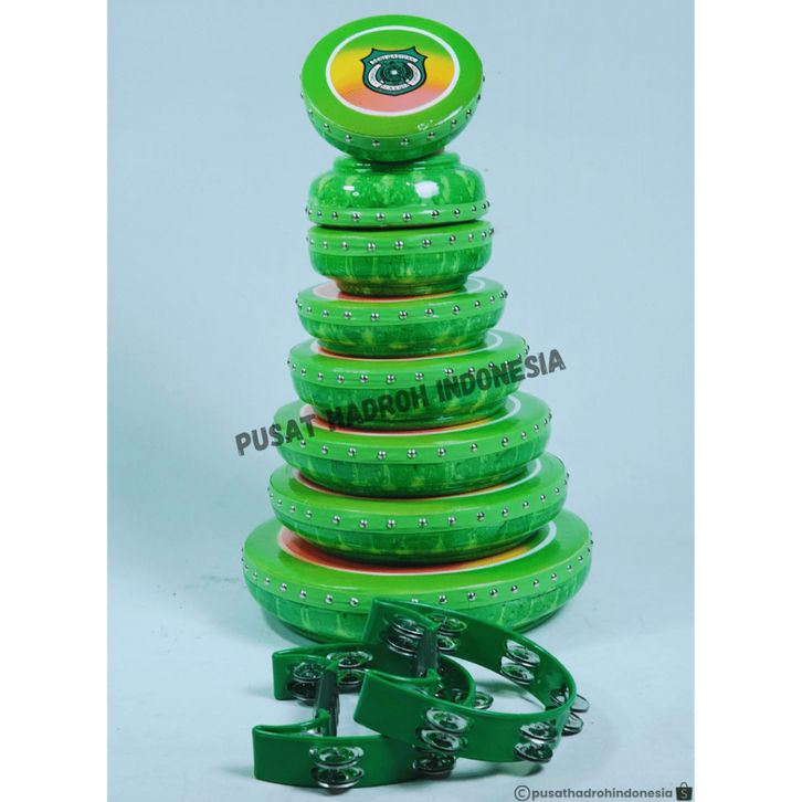 Rebana Qasidah Motif Keramik Hijau 1 Set Isi 10 Rebana Hadroh Banjari Terbangan Lasqi Fullset Susun 8 FREE TAS