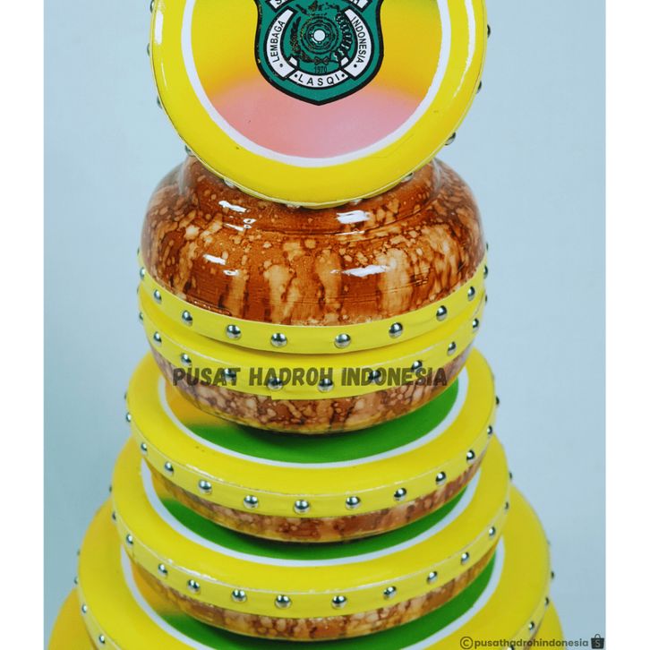 Rebana Qasidah Motif Keramik Kuning 1 Set Isi 10 Rebana Hadroh Banjari Terbangan Lasqi Fullset Susun 8 FREE TAS