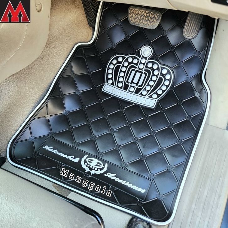 Karpet Mobil Mahkota Crown Hitam Logo Putih
