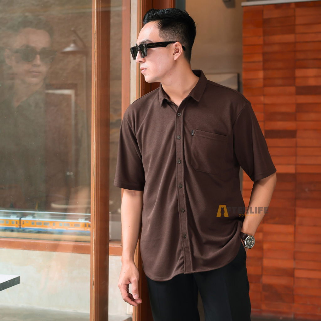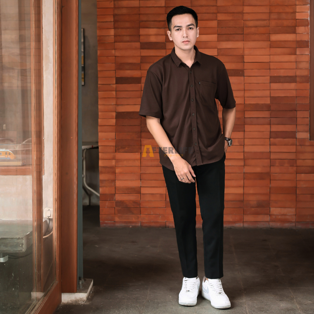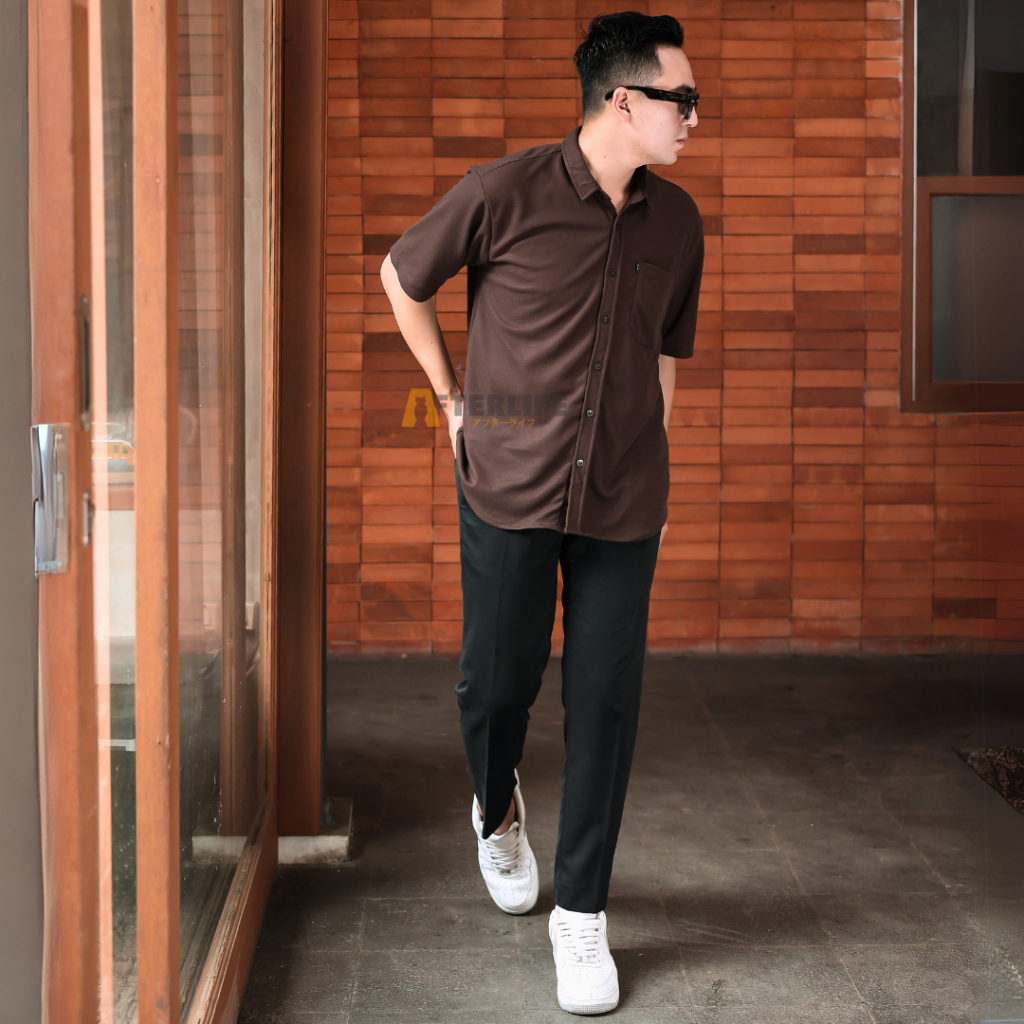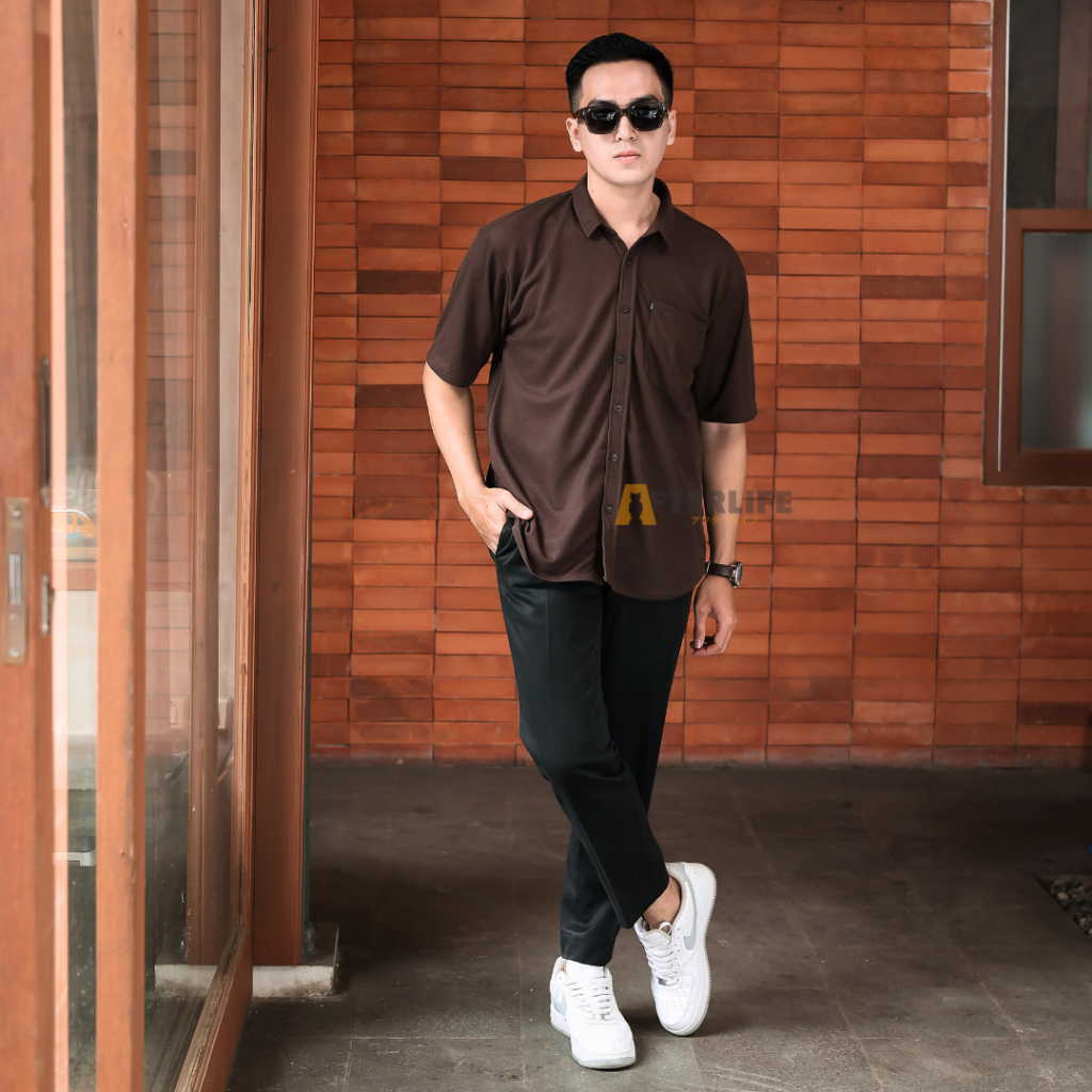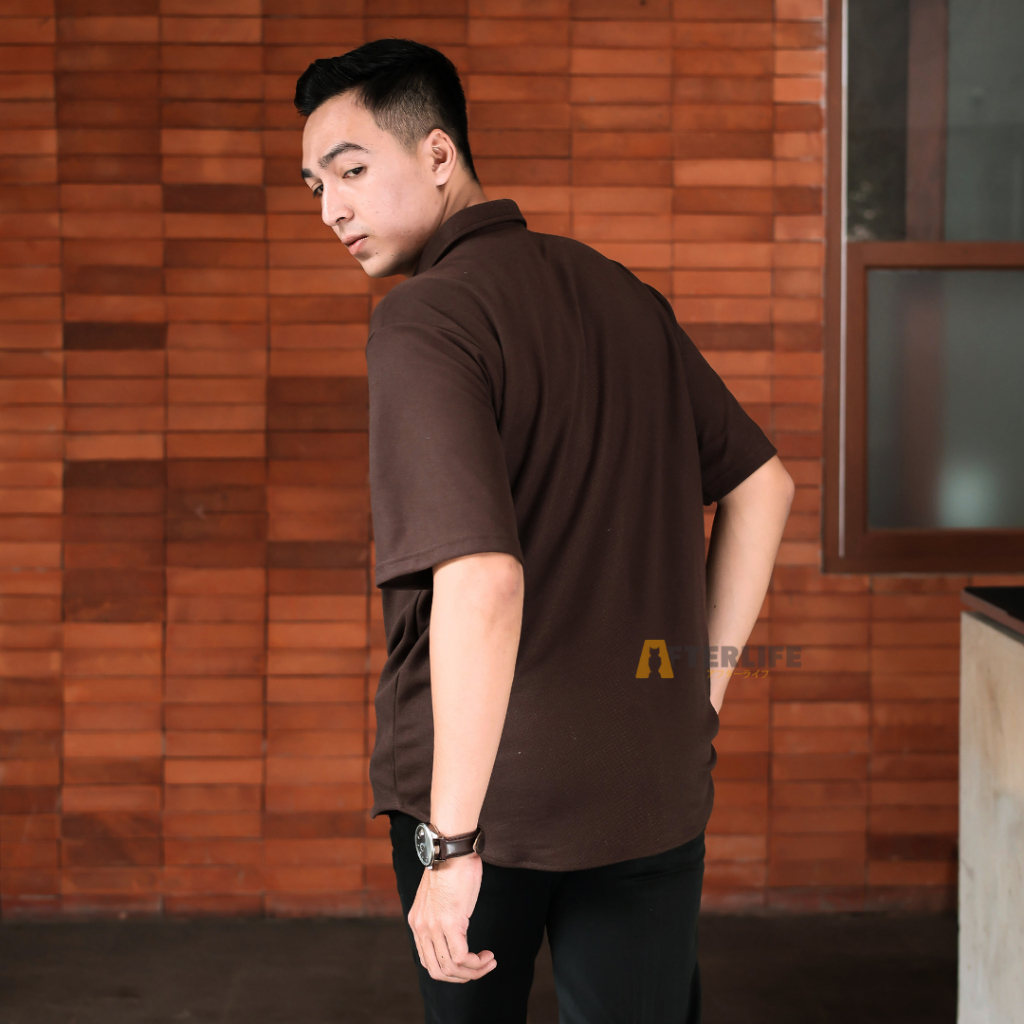 Kemeja Pria Afterlife Origin Pique Kemeja Basic Lengan Pendek