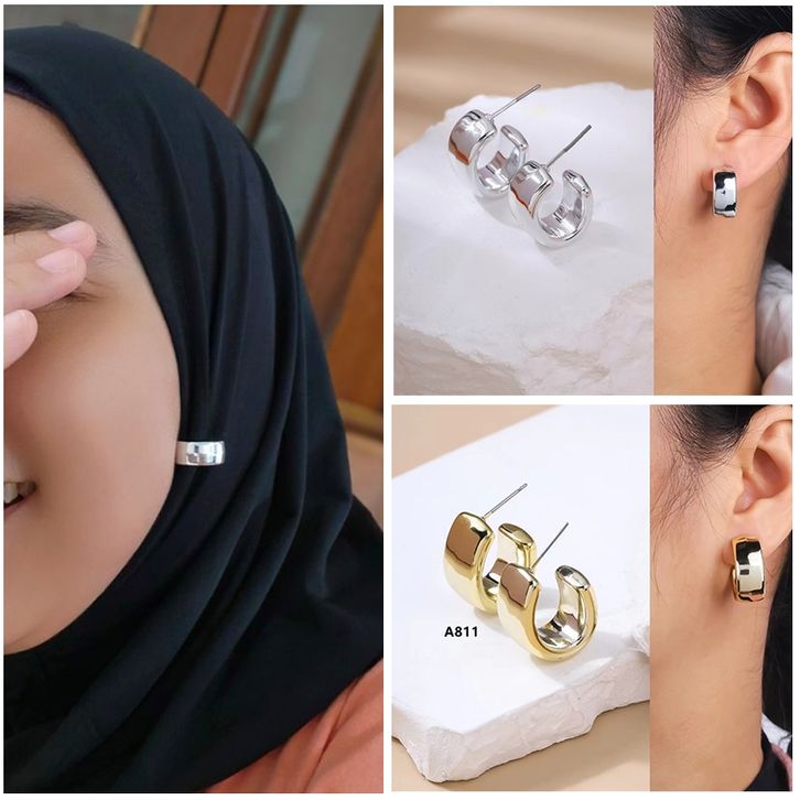 Aksesoris Anting Hijab Setengah Bulat Anting Baru Sederhana Dan Stylish Charm Modis Kekinian Stylish
