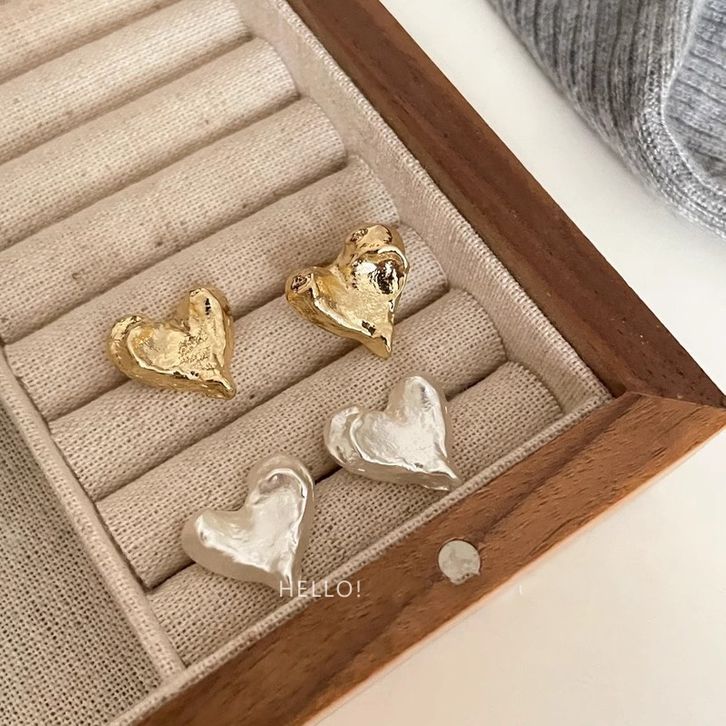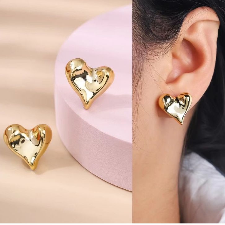Perhiasan Wanita Love Anting Kancing Bentuk Hati/fashion Wanita Lapis Emas Aksesoris Terjangkau