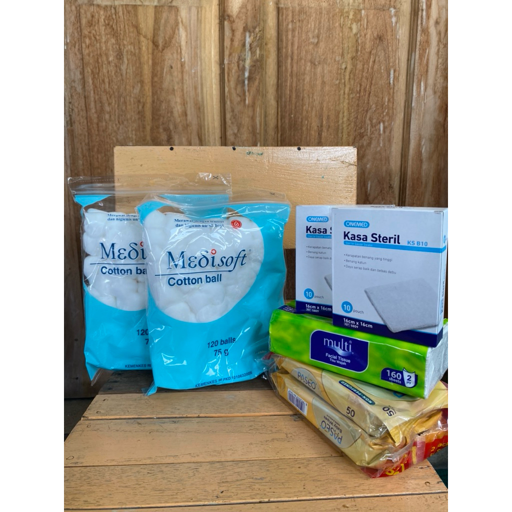 7 Pcs Paket Brojol Hemat (2 Medisoft + 2 Tisu Basah 50s + 2 Kassa Steril Onemed + 1 Tisu Kering Multi) Bayi Tissue Wipes