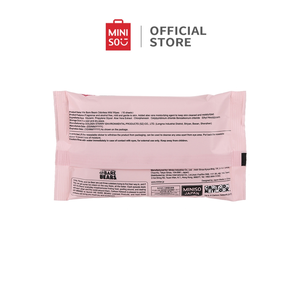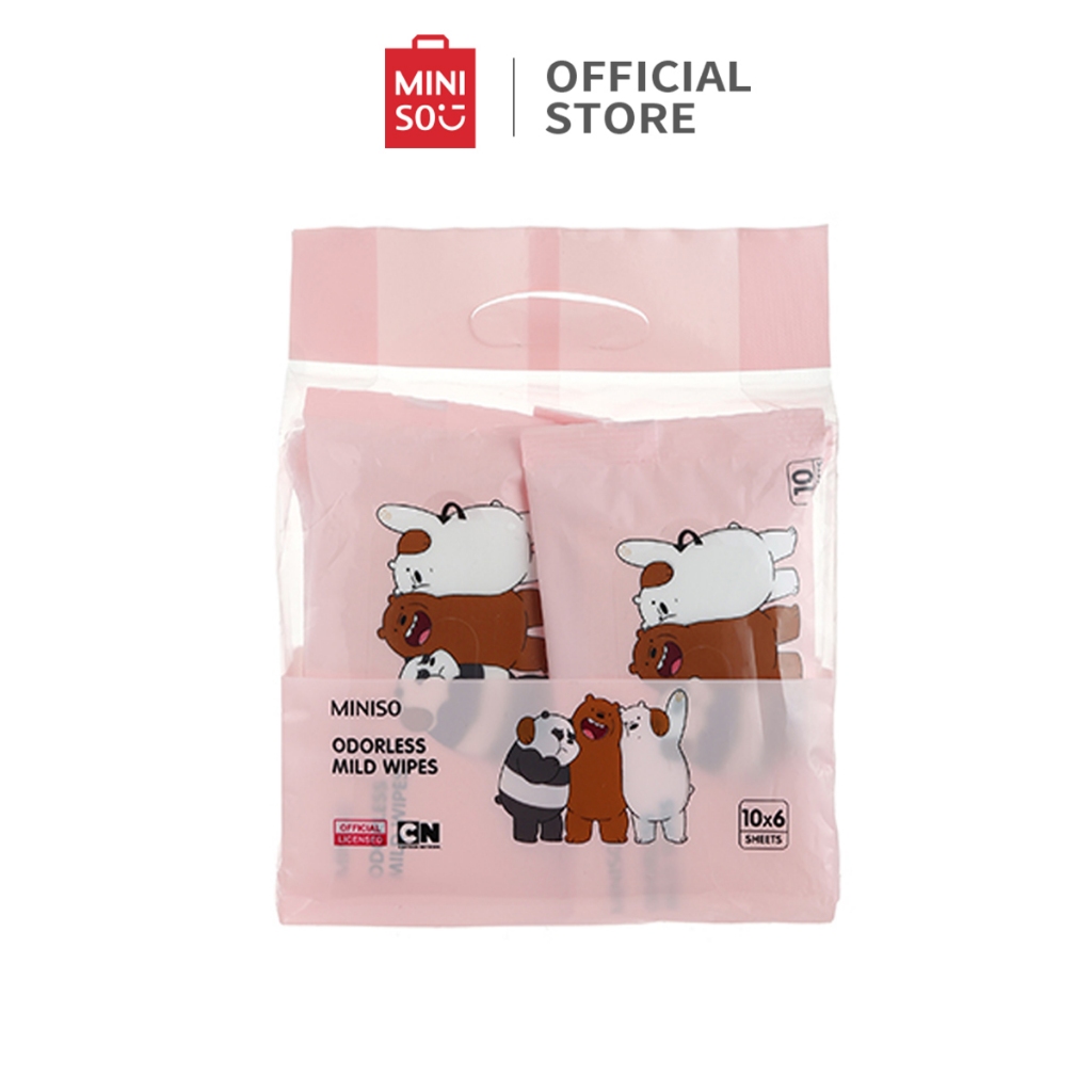 MINISO x We Bare Bears Tissue Gentle Unscented Cleansing Wipes 10 pcs*6 kemasan