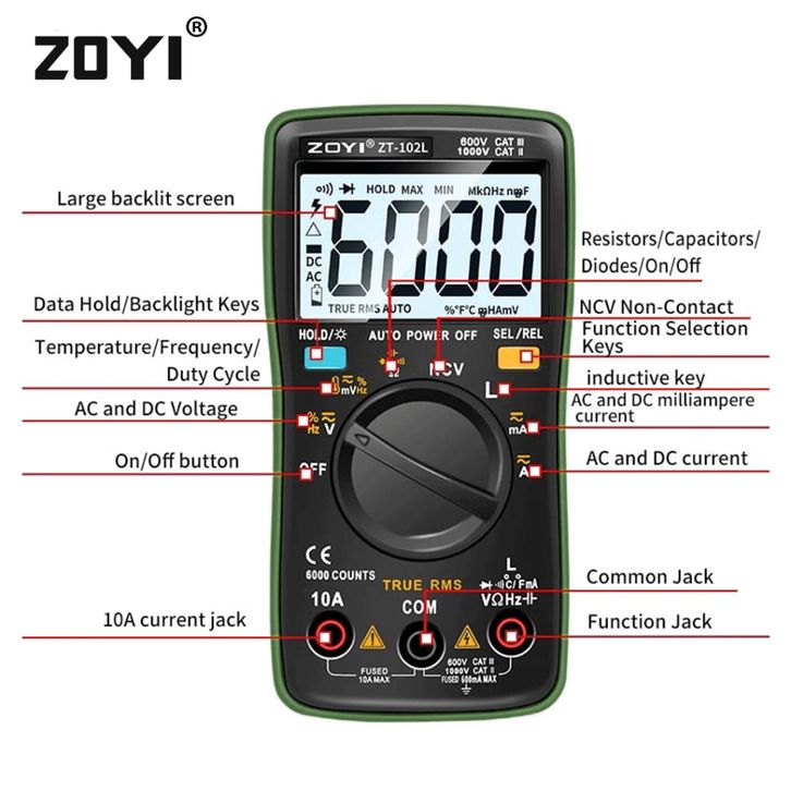 Multimeter Digital Zoyi Original - Zoyi Zt102l Digital Multitester Multimeter Industors Lengkap Kapasitor