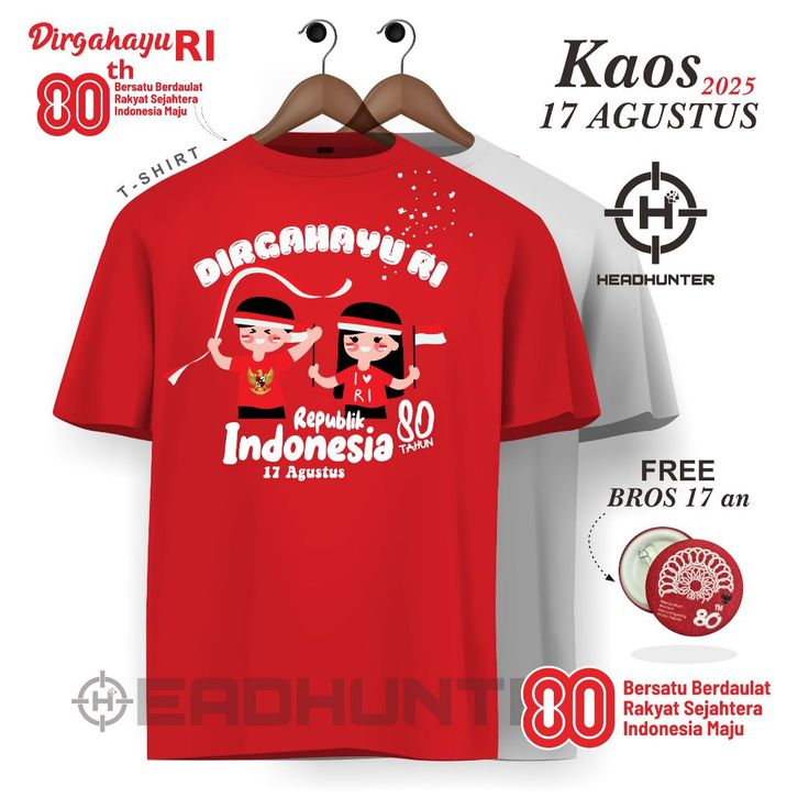 KAOS MERAH PUTIH AGUSTUSAN HUT RI KE 80 17 AGUSTUS 2025 DIRGAHAYU REPUBLIK INDONESIA MERAH PUTIH ANAK DEWASA DAN JUMBO