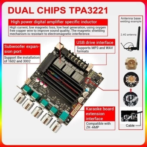 ZK-ST21 TPA3221 Amplifier 2.1 CH Bluetooth Hifi Stereo Class D 100W + 100W + 200W