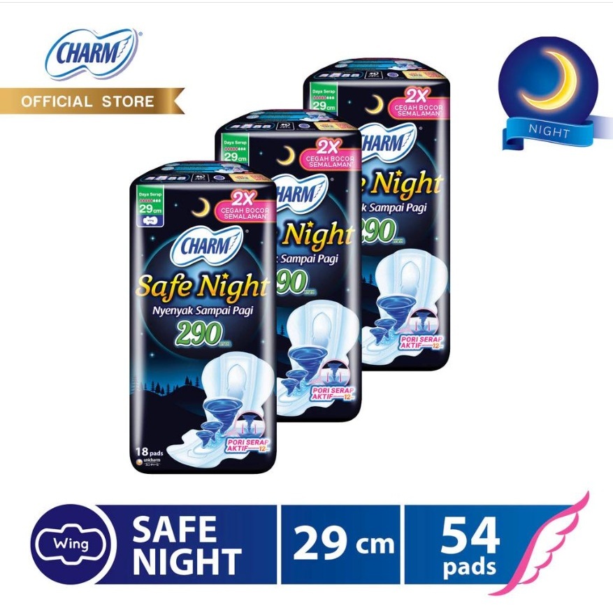 [ 3 PACK ] Charm Pembalut Safe Night 29cm Wing 18 Pads - Dapat 54 Pads [ BUNDLE ]