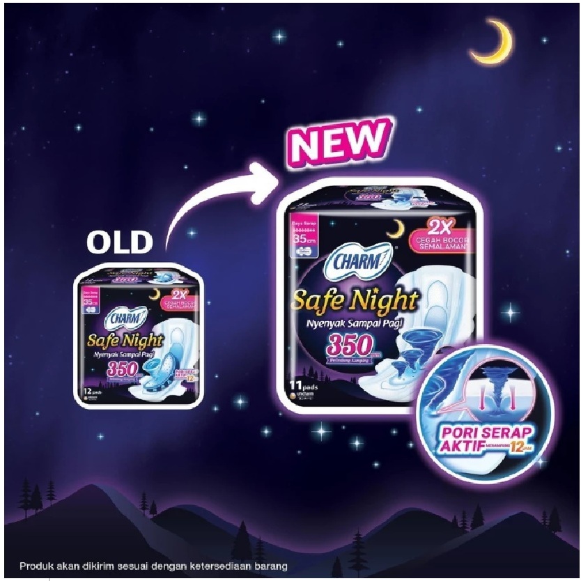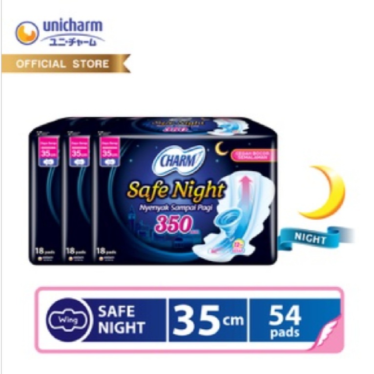 [ 3 PACK ] Charm Pembalut Safe Night 35cm Wing 18 Pads - Dapat 54 Pads [ BUNDLE ]