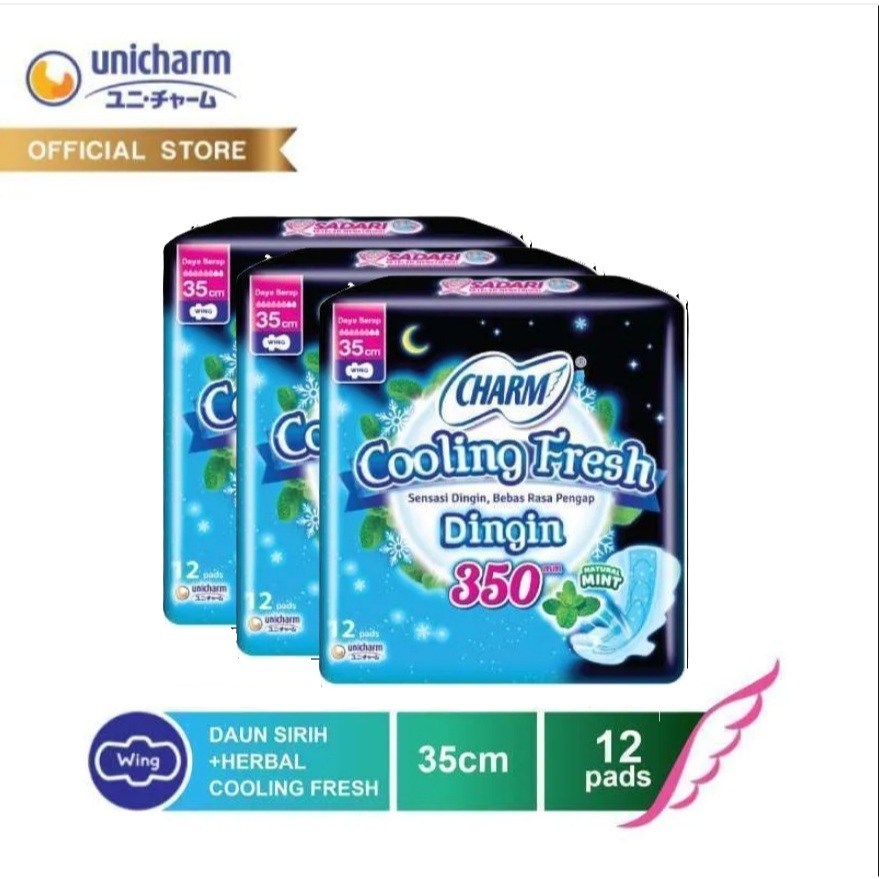 [3 Packs] Charm Pembalut Cooling Fresh Night 35cm 12 pads - [ Bundle ]