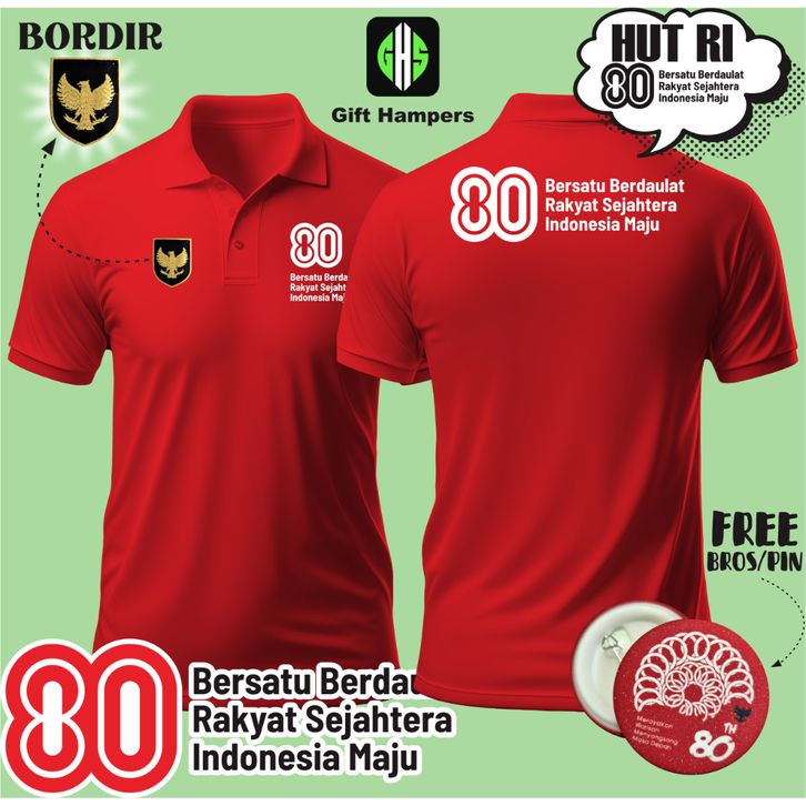 KAOS MERAH PUTIH AGUSTUSAN KAOS POLO KERAH PRIA DEWASA DAN ANAK EDISI DIRGAHAYU KEMERDEKAAN INDONESIA KE 80 TAHUN 2025