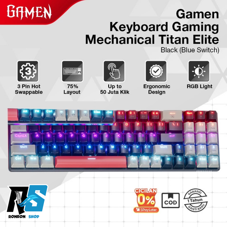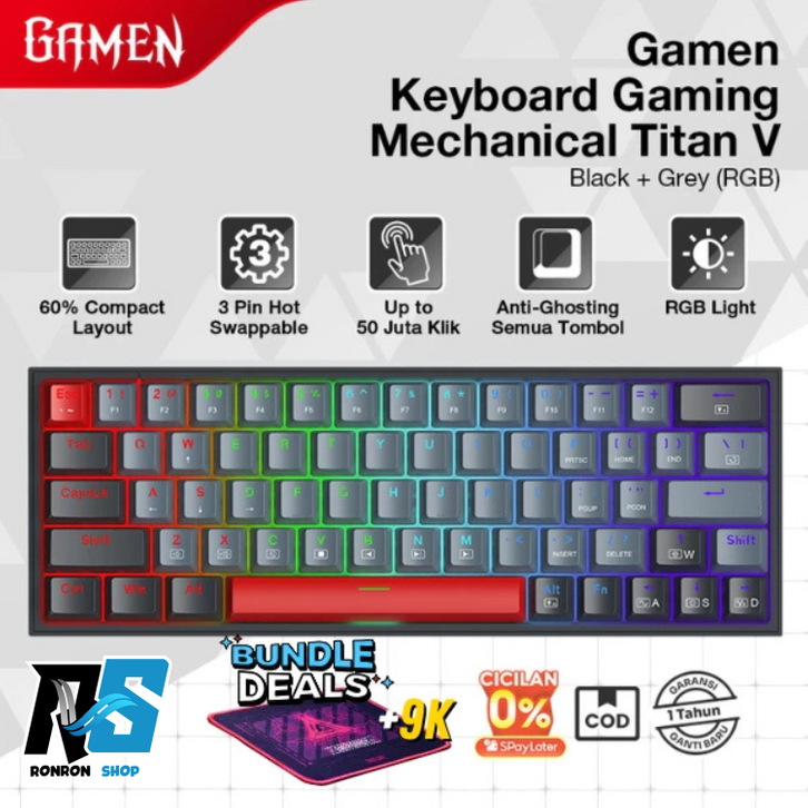 GAMEN Titan 5 Keyboard Gaming Mechanical 60% Layout RGB Light Hot-Swappable Full Key Anti-Ghosting Original - Garansi 1