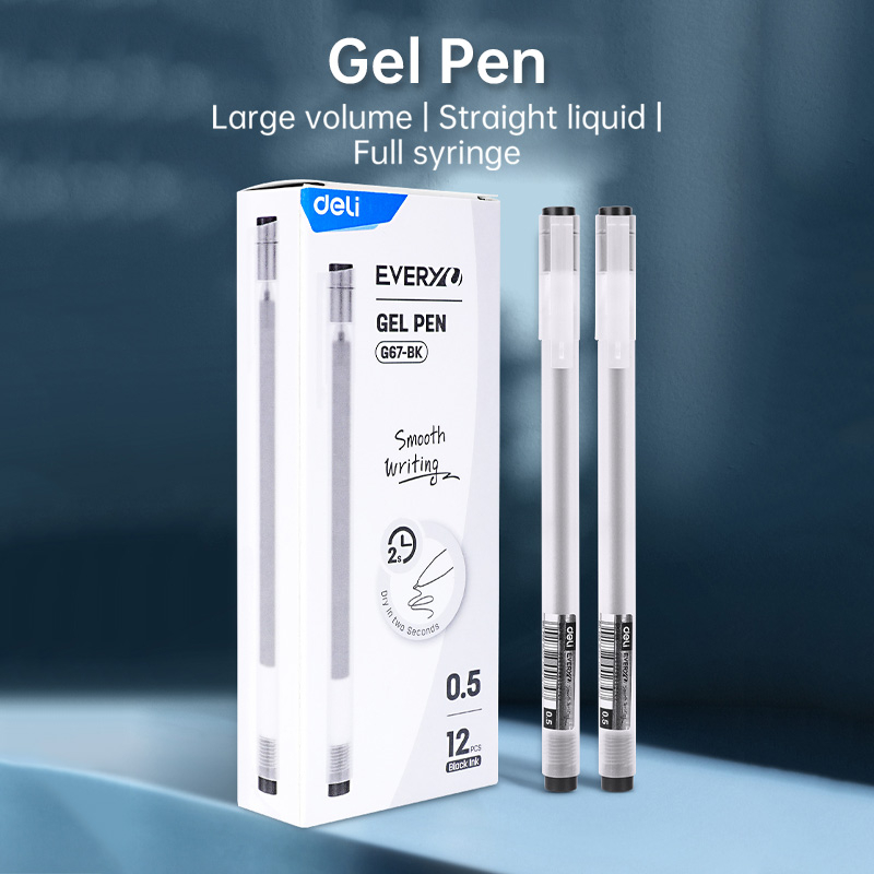 Deli Gel Pen / Pulpen Gel 0.5mm Isi 12 pcs Tinta Banyak ATK Kantor EG67-12PCS