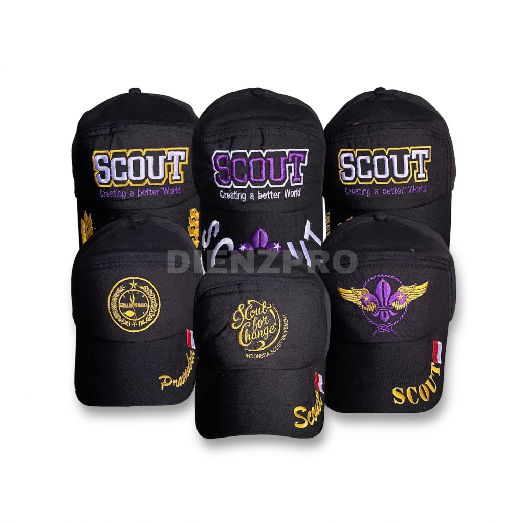 TOPI PRAMUKA HITAM BORDIR BEST SELLER TERLARIS TERPOPULER BAHAN DRILL BISA