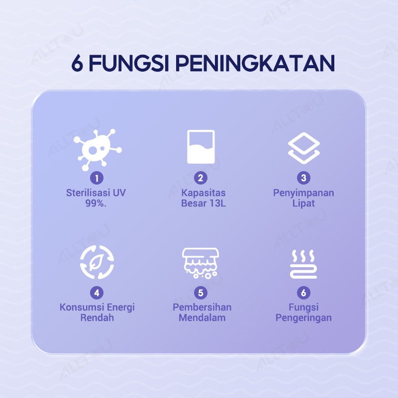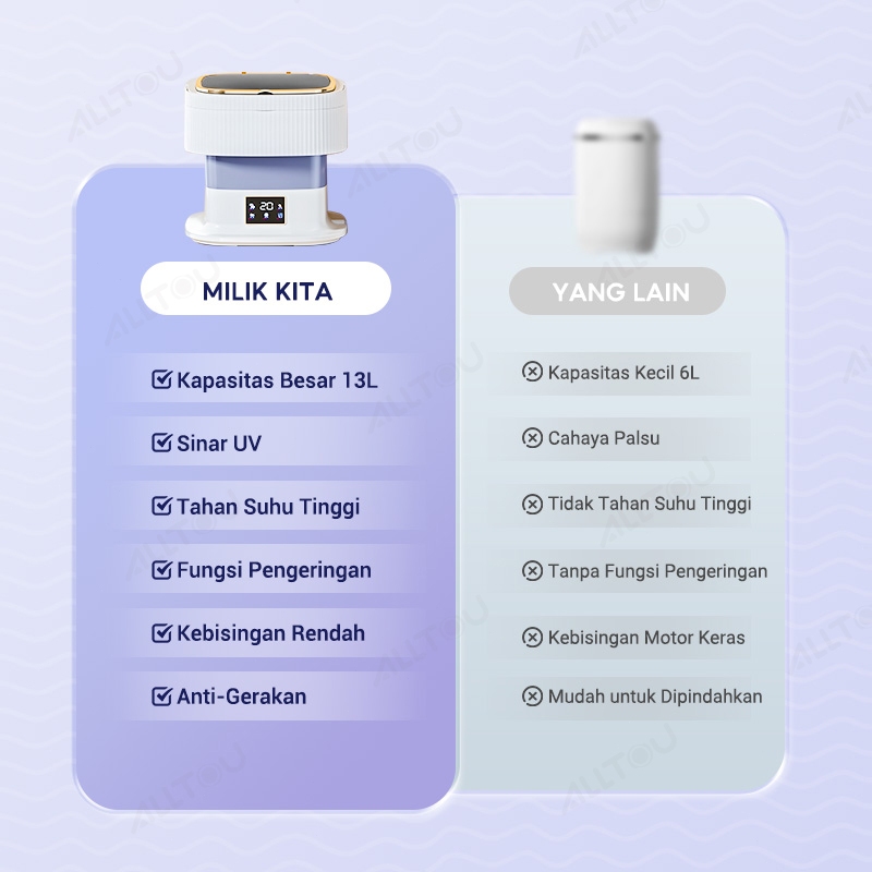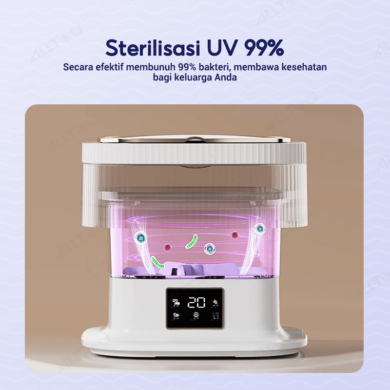 ALLTOU Mesin Cuci Mini Portable 13L Otomatis Mesin Pengering Pakaian Sterilisasi Cahaya Biru
