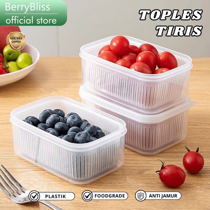 Berrybliss - Kotak penyimpanan kulkas dengan saringan Kotak Penyimpanan Makanan Pengering Sayur - Tempat Penyimpanan Bua