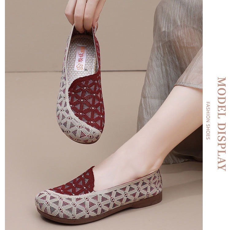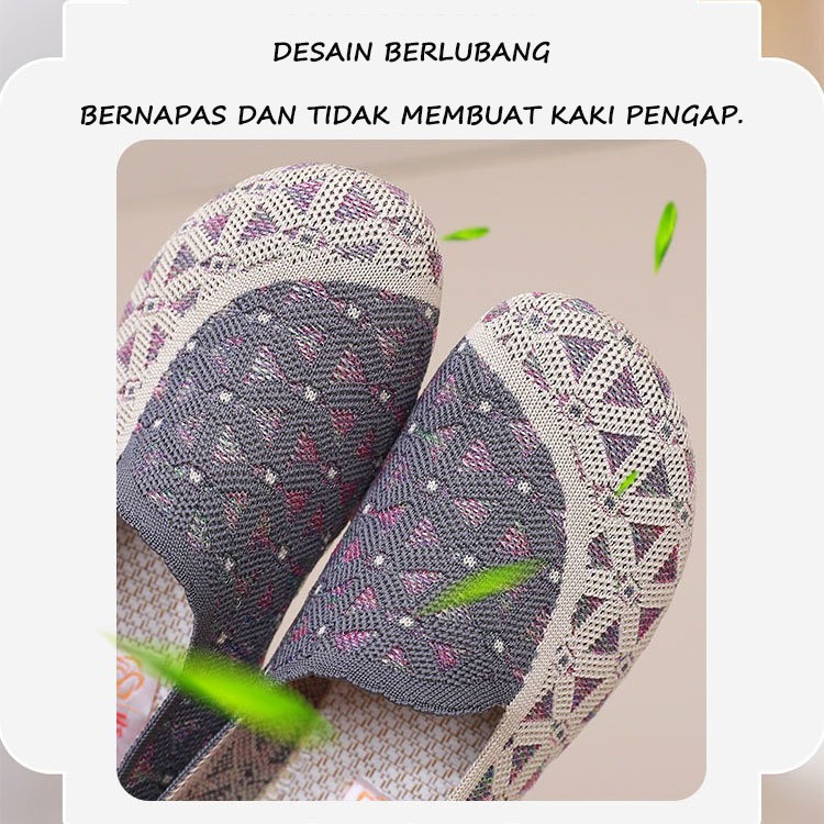 [Ready Stock]Sepatu Kain Nyaman 2025 - Desain Datar & Tembus Udara untuk Ibu, Bahan Kain, Slip On HF01