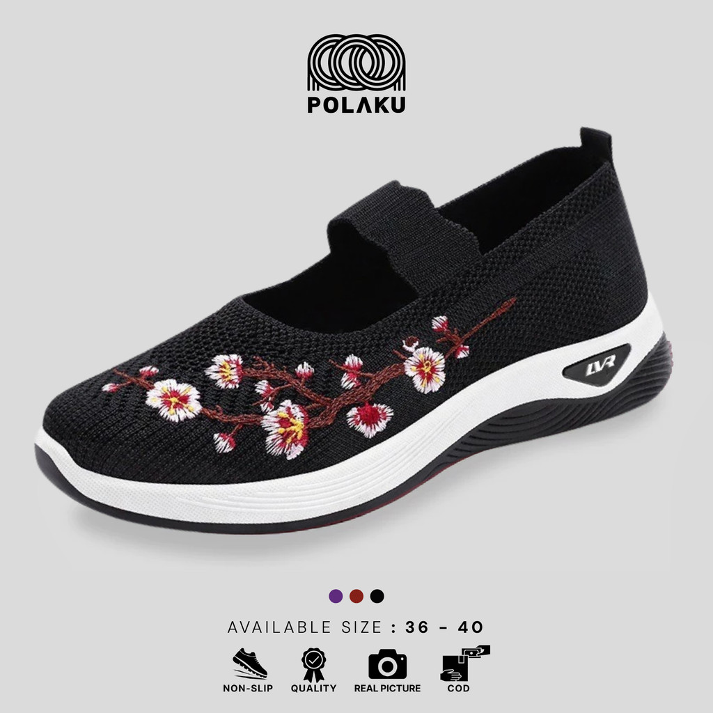 PLK FREE BOX LV0328 Sepatu Slip On Wanita Sepatu Wanita Fashion Motif Bunga Premium Quality