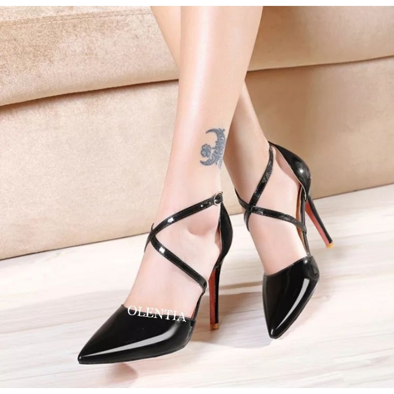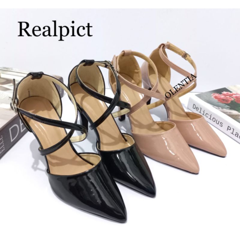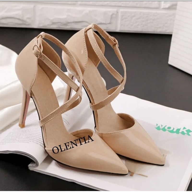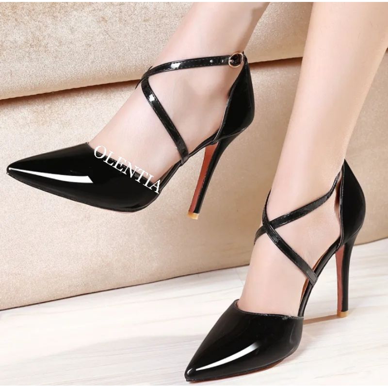 Sepatu Heels Wanita 9cm Sintetis Glossy Elegan
