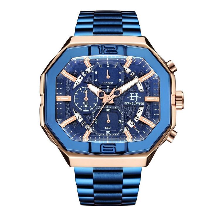 Evans Jayden Jam Tangan Pria EJ 9464 Rantai Stainless Chronograph Kaca Sapphire Water Resistant 10ATM