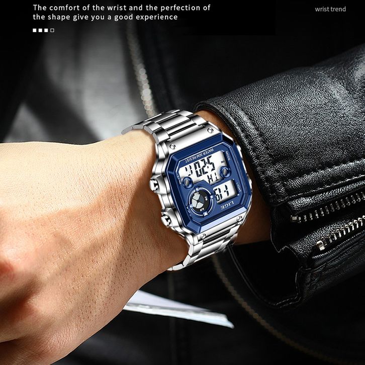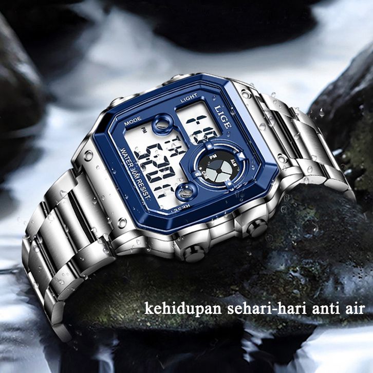 LIGE Original Jam Tangan Pria Digital Fashion Anti Air Baja Tahan Karat Kalender Bercahaya Jamtangan
