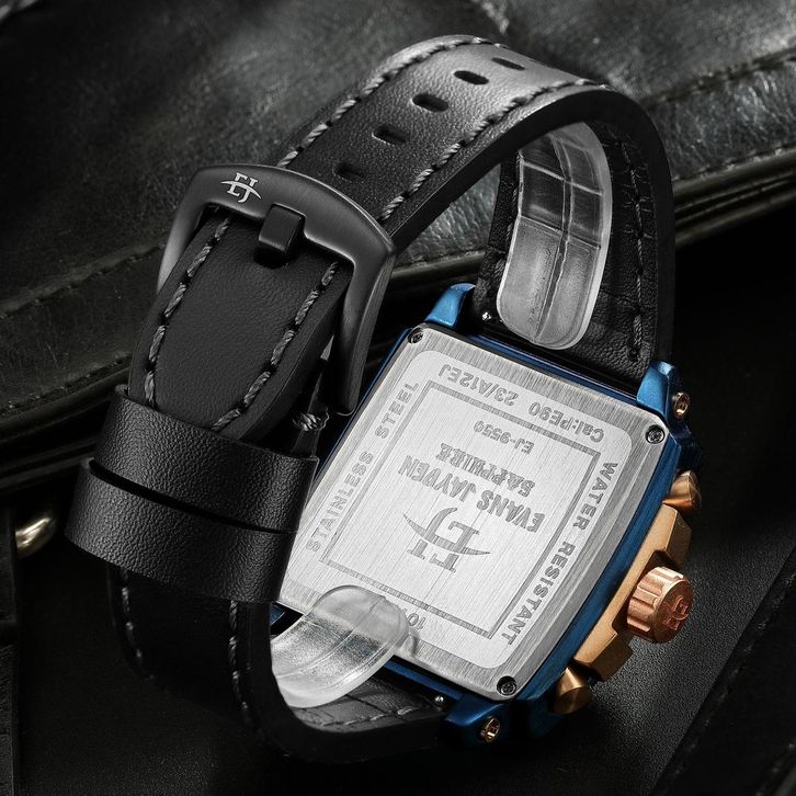 Evans Jayden Jam Tangan Pria 9550 Kulit Kaca Sapphire Chronograph Water Resistant 10 ATM