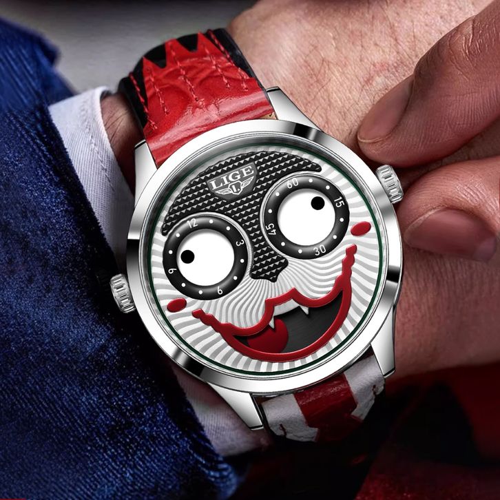 LIGE Jam Tangan Pria Asli Tahan Air Tali Kulit Dial Badut Desain Fashion Jam Tangan Kuarsa