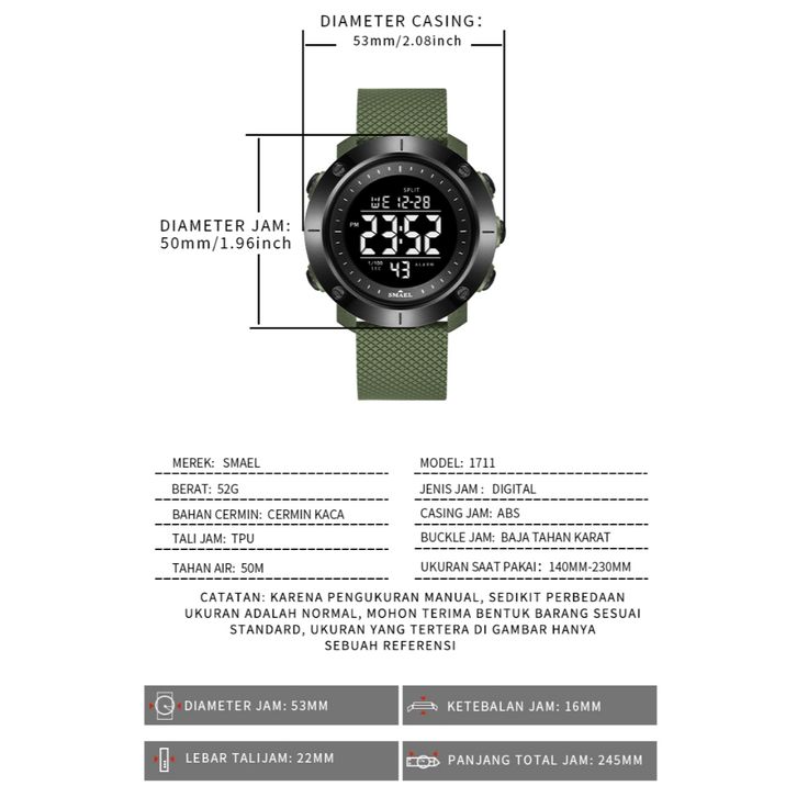 SMAEL 1711 Jam Tangan Elektronik Pria Antiair dengan Fitur Pencahayaan, Pengatur Waktu, dan Alarm