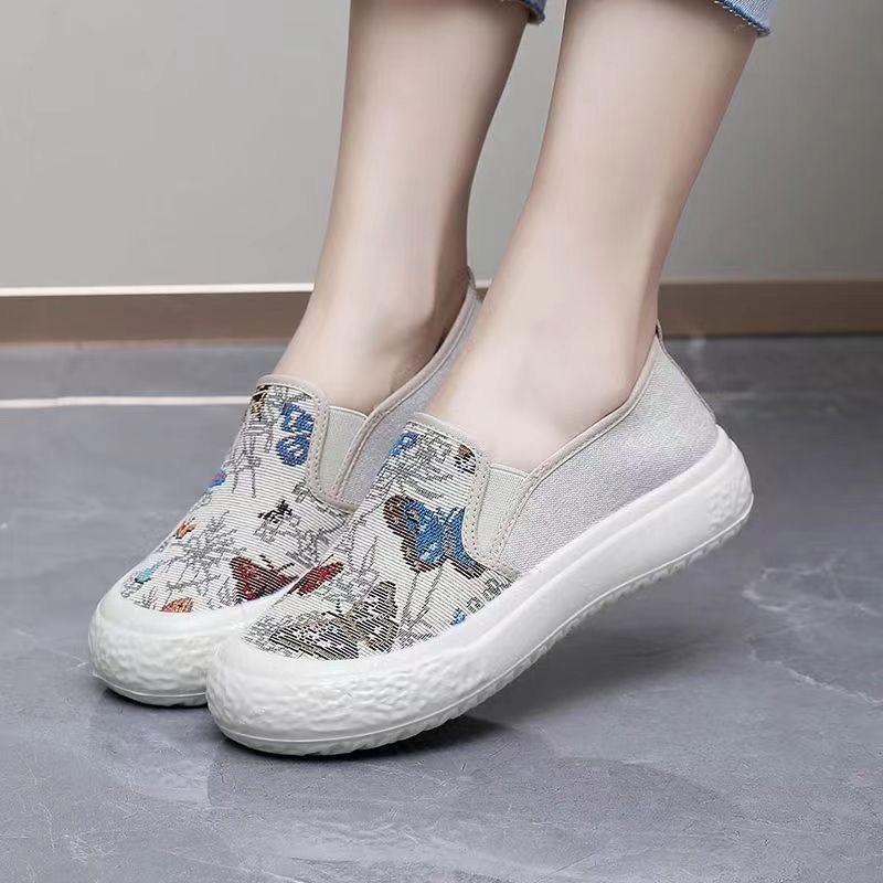 NW059 Sepatu Slip On Wanita Motif Kupu-Kupu