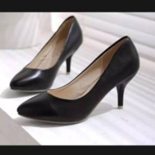 Anna Shoes High Heels Wanita Glossy Hitam Nyaman