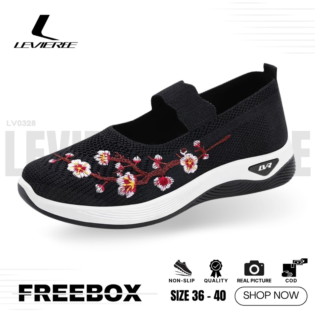 LVR FREE BOX LV0328 Sepatu Slip On Wanita Fashion Motif Bunga
