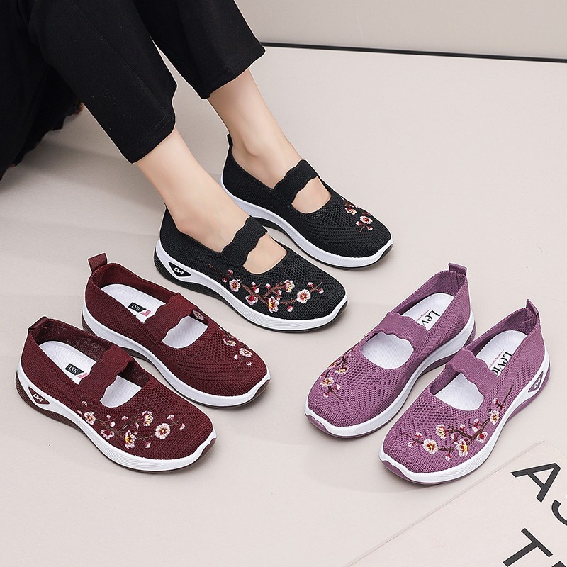PLK FREE BOX LV0328 Sepatu Slip On Wanita Sepatu Wanita Fashion Motif Bunga Premium Quality
