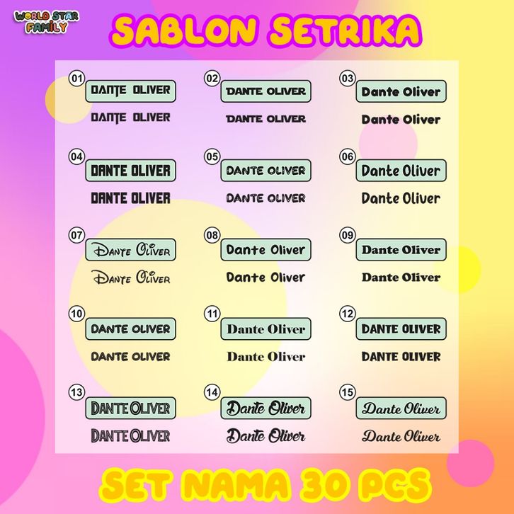 WSF Sablon setrika Stiker label nama stiker label nama dtf custom label nama anak FREE CUSTOM NAMA stiker DIY kaos STI