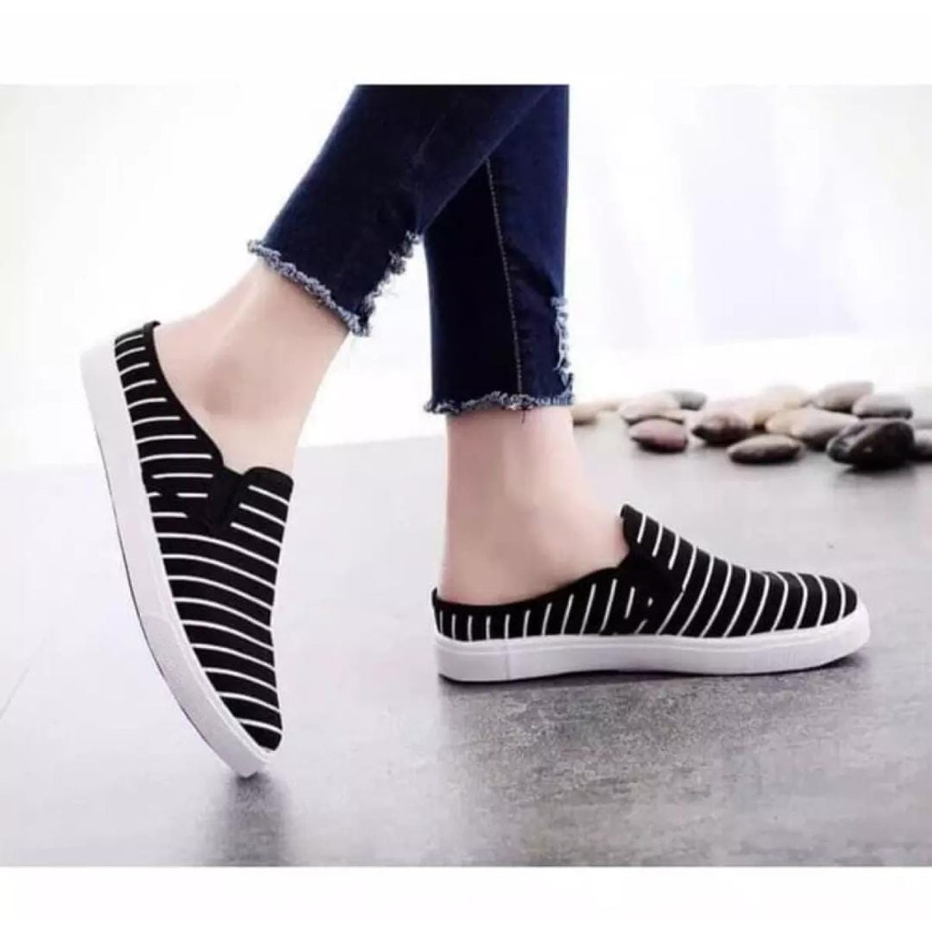 Sepatu Slip-on Wanita Terbaru Motif Bapau Salur