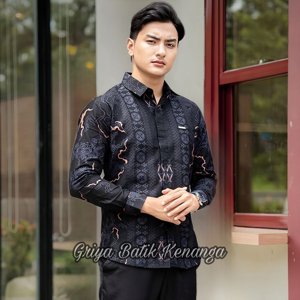NEW ARRIVAL DISTRO KEMEJA BAJU BATIK PREMIUM ABADI PRIA LENGAN PANJANG PRIA COWO COWOK BORDIR SOGAN HRB026 MODERN S