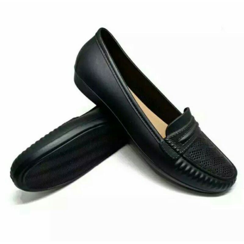 TJ707 - Sepatu Karet Fantopel Hitam Fuhaha Polos Motif Lubang Size 36 - 40