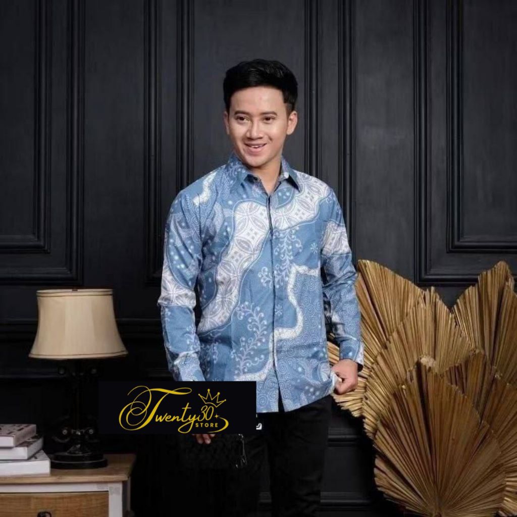 Baju Kemeja Batik Pria Lengan Panjang Size M L XL XXL BSWART Warna Biru Denim